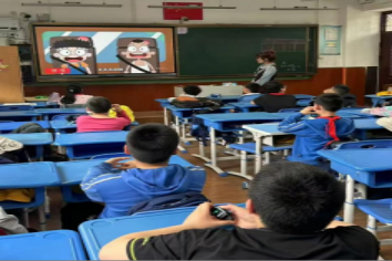 课堂上,志愿者们巧妙借助多媒体工具通过播放动画视频、展示精心制作的PPT等形式原本抽象复杂的物理知识转化为同学们易于接受的直观内容。同时他们简洁明了的语言深入浅出地讲解晦涩难懂的物理原理,同学们实现了视听的完美结合,“惯性”这一物理知识悄然融入了孩子们的认知世界。期间,志愿者王晓晗不时提问互动,同学们踊跃发言志愿者申宝琪加入到同学们中,与他们一同热情地讨论课堂上的知识与问题课堂氛围十分活跃