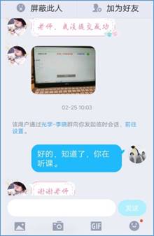 在课后,李老师认为要及时查看学生参与课堂数据,发现问题及时通过QQ交流。由于网络授课可能会存在网络不稳定的状况,学生可能会被挤出课堂,通过交流可以避免雨课堂课堂数据记录不真实的情况。此外,课后交流一方面可以督促学生认真学习,另一方面可以避免误解学生未参与,避免学生情绪波动。
