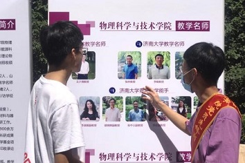 于迎新现场设置风采展板,配有专门的礼仪讲解员,全面介绍av动漫
