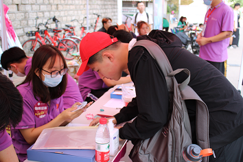 迎新报到现场,咨询新生入学手续办理进展情况,针对学生所关心的内容进行了交流。