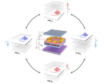 图1. 门控二维多铁反铁磁材料中四态层电子学的示意图