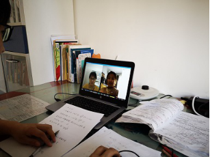 图5:学生分享屏幕讲解课前预习工作,老师听课检查并和学生互动讨论