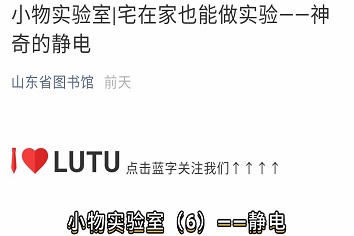 由于新冠肺炎疫情的蔓延,活动采取了线上进行的方式。活动一发起,同学们便积极报名,踊跃参加。志愿者们精心录制了实验课堂的视频,并写好了实验课堂的讲稿,从策划到剪辑,都尽心尽力做到最好。相关人员将志愿者们实验课堂的视频及讲稿整理完毕后,发送给了山东省少儿图书馆的老师,实验课堂将在山东省少儿图书馆的微信公众号上进行播出。实验过程中用到了矿泉水瓶、水槽、气球、尺子等,青年志愿者通过这个小实验,像小朋友们介绍了静电效应这个科学小知识,让小朋友了解了什么是静电现象。实验课堂播出后收获了孩子的家长们积极的反馈,表示孩子们十分喜欢观看。此次活动给孩子们普及了许多物理小知识,增加了孩子们的知识储备,开拓了学习视野,也给孩子们的生活增添了一份乐趣。