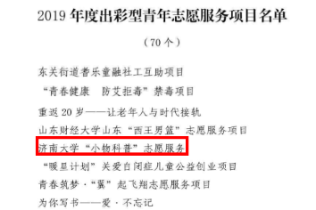 “小物科普”志愿服务项目荣获“出彩型青年志愿服务项目”称号。