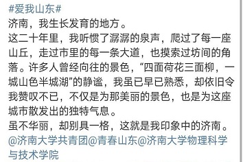 积极响应团省委号召,于8月10日至8月15日开始广泛征集“爱我山东”主题作品投稿,并号召同学们积极在新浪微博参与话题讨论。