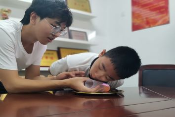 格物楼与主讲人丁晓鹏同学零距离地完成实验。实验伊始,晓鹏哥哥先向小朋友们介绍了本次实验需要用到的器具:一个玻璃瓶、一颗鸡蛋、一杯热水及一杯冷水。然后手把手地教两位小朋友操作实验:先尝试将鸡蛋放入瓶子,这时,小朋友们无论怎样用力鸡蛋都不会进入瓶子。两位小朋友满脸疑惑,同时也积极地思考将鸡蛋放入瓶子的办法。随后,在晓鹏哥哥的引导下,小朋友们亲手操作实验,先将热水倒入瓶子,再将热水倒掉,现在将鸡蛋放到瓶口,为了加速冷却,将瓶子放到冷水中,等它冷却后,鸡蛋便掉到瓶子里去了。这时,两位小朋友都拍手叫好,还积极地提出问题,晓鹏哥哥也很有耐心地回答了他们。见面会最后,小朋友们和晓鹏哥哥进行了合影留念。