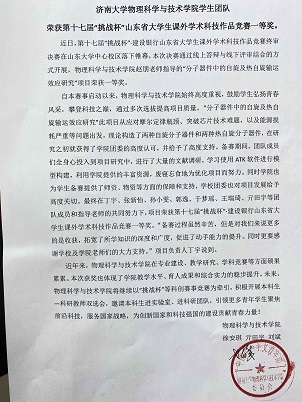 也为学生备赛提供了师资、物资等方面的保障和支持,学校团委也对项目发展给予高度关切。最终在丁宇、张新怡、孙小雯、郭逸、于梦瑶、王瑞琦、亓田宇等团队成员和指导老师的共同努力下,项目荣获第十七届“挑战杯”·建设银行山东省大学生课外学术科技作品竞赛一等奖。“备赛过程虽然辛苦,但是对我们来说更多的是收获,拓宽了所学知识的深度和广度,促进了动手能力的提升。同时更要感谢学校及av动漫