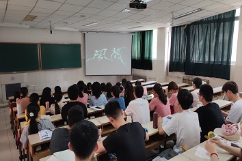 物理系教工党支部与物理学生党支部以弘扬党的精神,传播党的意志为初心,积极组织老师与同学们展开深入交流。活动分两部分进行,第一部分由物理系教工党支部书记杨中娟和物理学生党支部书记伊梦寒为学生上党课。在悠扬又激昂的旋律下,杨老师以“讲好党的故事,铭记党的历史”为主题,向同学们讲述中国共产党的精神,传播着中国共产党的理念,教育引导学生牢固树立“四个意识”,“四个自信”,做到“两个维护”。伊老师以“接过奋斗的接力棒”为主题向同学们介绍了新民主主义革命阶段,社会主义革命和社会主义建设阶段,改革开放和社会主义现代化建设的新阶段中发生的众多大事,从中共一大到新中国的成立,从抗匪剿匪、抗美援朝到十一届三中全会后众多领导人为祖国富强,人民幸福所作出的种种努力。老师们的讲解充分展现了无数中国共产党人为了国家的兴盛所做出的努力,充分激发了大家承继伟业、团结奋斗、继续前行的爱国热情。